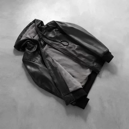 Highschool Black Hooded Leather Jacket – Men’s Streetwear