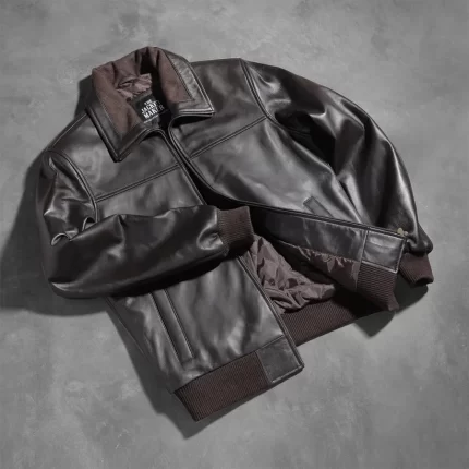 Glen Street Brown Leather Bomber Jacket Men’s Classic Streetwear Outerwear