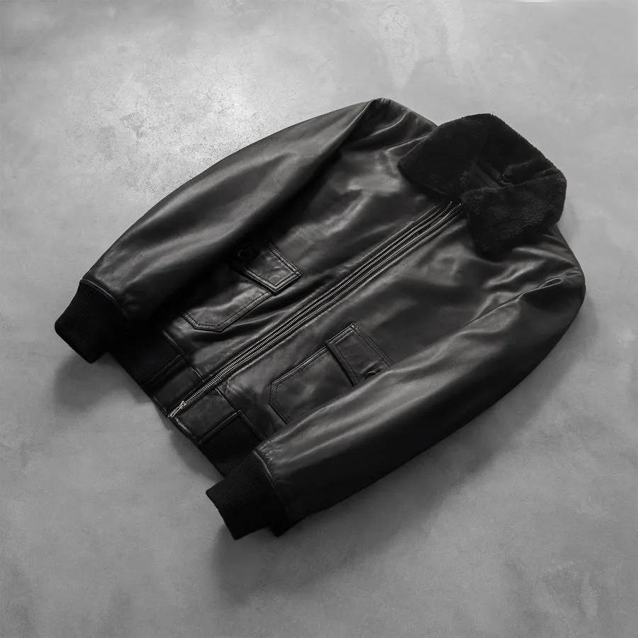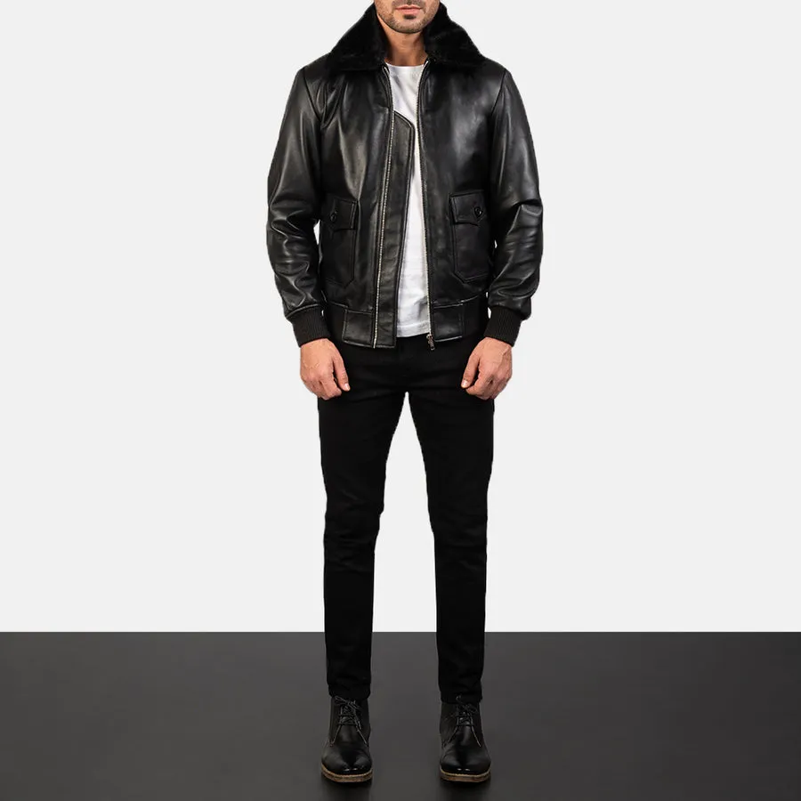 Airin G-1 Black Leather Bomber Jacket – Classic Aviator