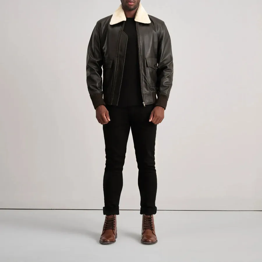 Step into timeless aviation style with the Airin G-1 Brown & Cream Leather Bomber Jacket, a luxurious blend of ruggedness and sophistication. Crafted from high-quality real leather, this jacket features a rich brown exterior paired with a soft cream shearling-style collar for a classic G-1 military look.
