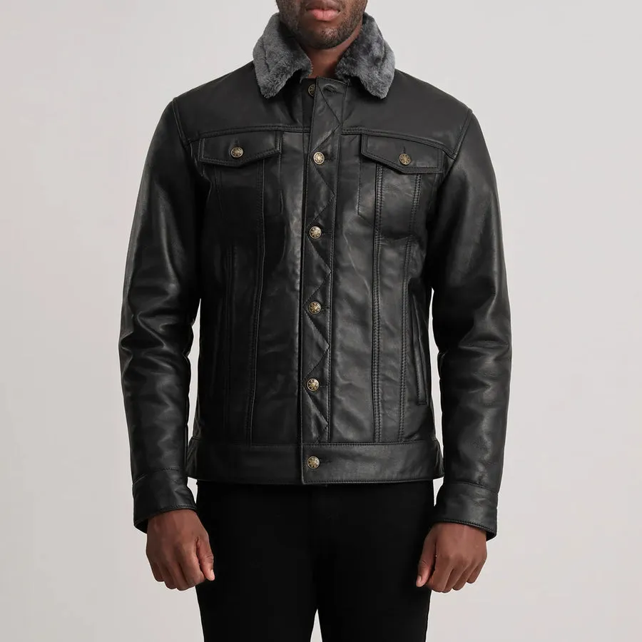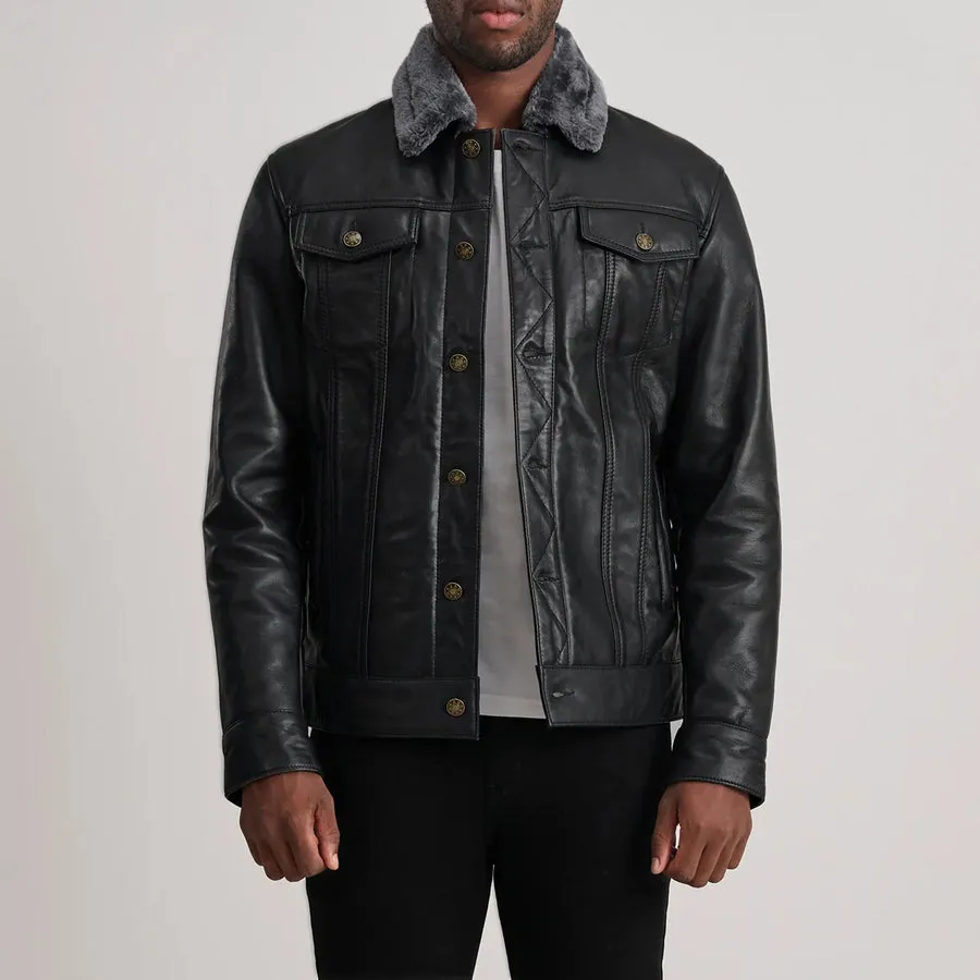 Meet the Dallis Black Shearling Trucker Jacket — a perfect blend of rugged style, winter warmth, and luxury comfort. Crafted from high-quality black leather and lined with soft shearling, this jacket brings iconic trucker aesthetics with a modern twist. Whether you’re heading out on a casual day or dressing sharp for a night out, this piece adds effortless confidence to your look.