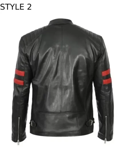 Mens Cafe Racer Striped Black Retro Biker Jacket
