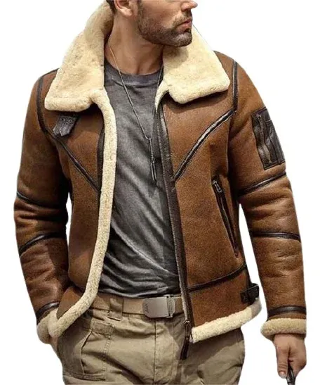 Mens Aviator Brown Sheepskin Shearling B3 Jacket