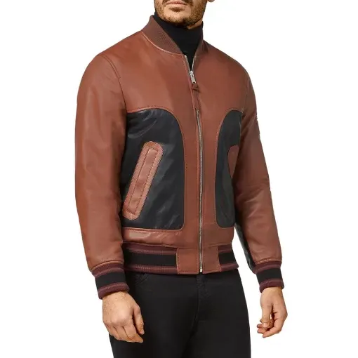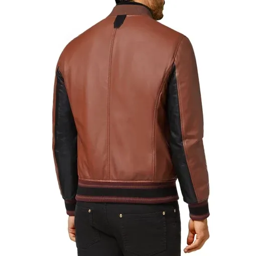 Men’s Brown and Black Bomber Leather Jacket