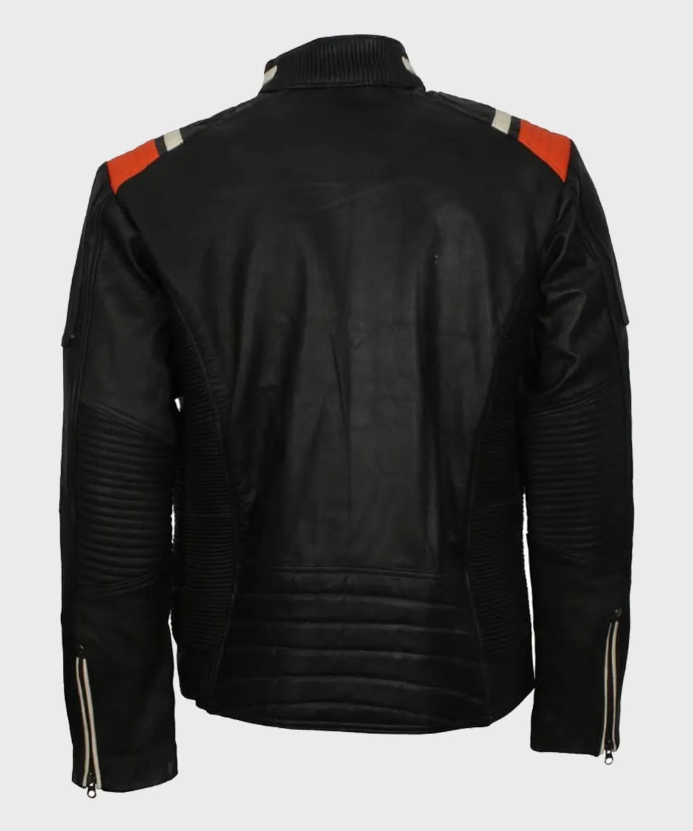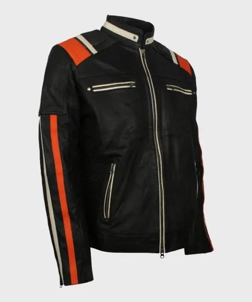 Men’s Black Cafe Racer Red and White Striped Leather Jacket