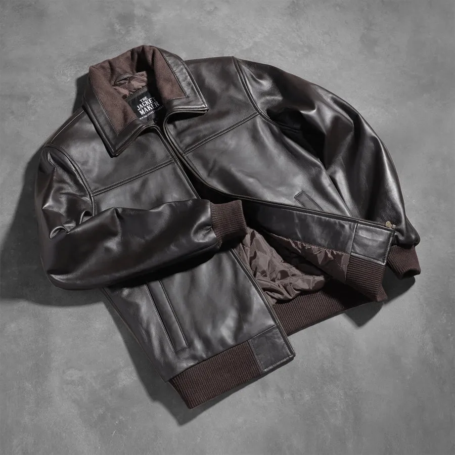 $170.00Men Brown Pilot Shearling Bomber Leather Jacket