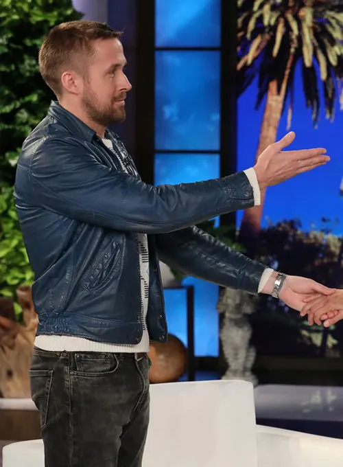 Unify casual and formal style with a leather piece that becomes your fashion statement and speaks out for you with pride. Get hold of our replica leather jacket inspired by your favorite celebrity, actor Ryan Gosling. He wore this jacket while promoting his movie First Man on The Ellen DeGeneres Show, looking very sophisticated and dashing.