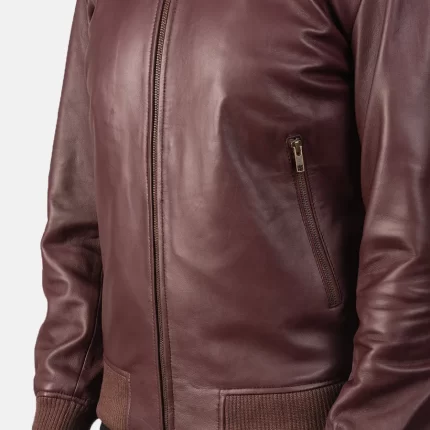 Shane Maroon Leather Bomber Jacket Maroon Outerwear